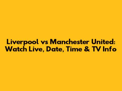 Liverpool Vs Man Utd: Watch Live, Date, Time & TV Info