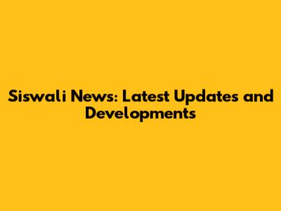 Siswali News: Latest Updates And Developments