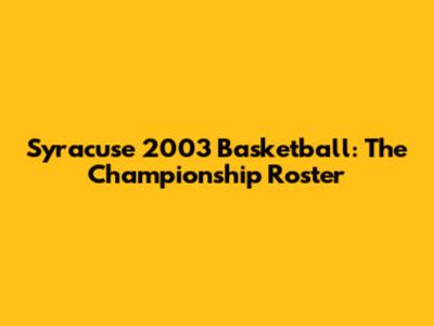 Syracuse 2003 Basketball: The Championship Roster